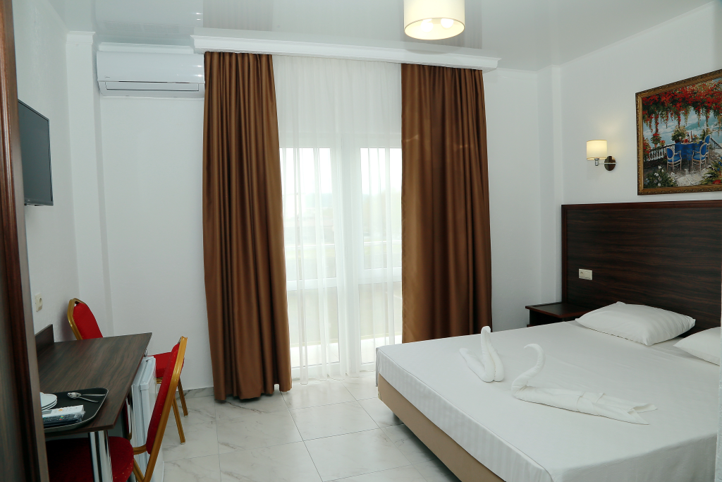 Каждый номер гостиницы «Самсон» выполнен в современном стиле, звукоизолирован и оборудован всем необходимым для комфортного проживания. Они оснащены телевизором с плоским экраном, удобной кроватью, шкафом, кондиционером, сейфом и письменным столом. Из номеров открывается потрясающий вид на море или природные окрестности города. В каждом номере есть собственная терраса, где можно насладиться звуками моря или отдохнуть с семьей.